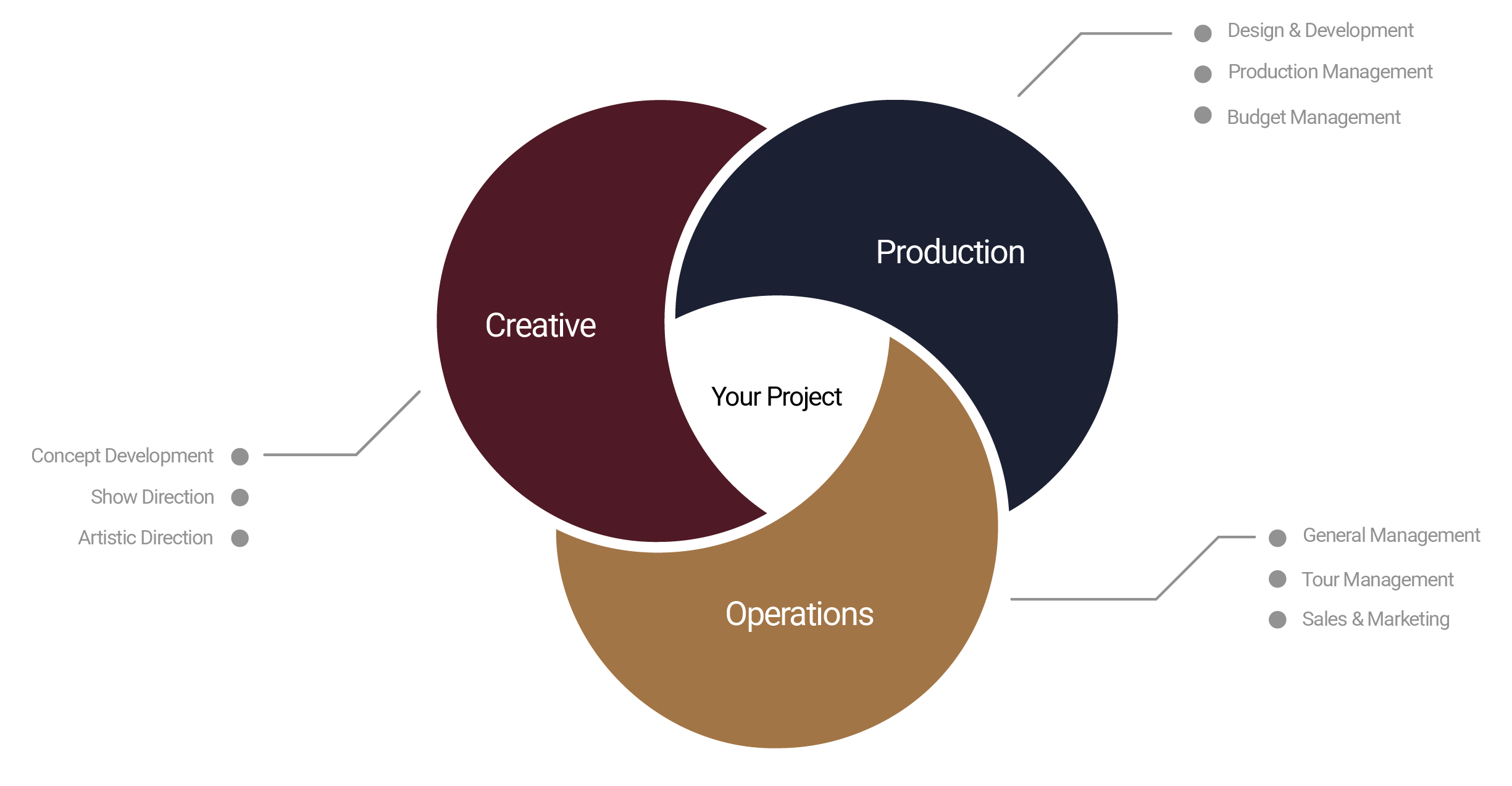 We surround your project with a powerhouse collective of industry veterans specialized in Creative, Production, and Operations. We synchronize decades of mastery to turn your most ambitious goals into a lasting reality. No learning curve. No wasted motion. Just results.